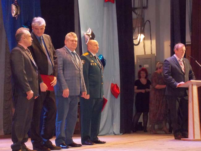 Следующими на сцену поднялись ветераны-афганцы, члены регионального отделения «Боевое братство» Сергей Погода, Николай Горелов, священника Георгия из Вольска, настоятеля Шиханского храма отца Александра и Председателя Совета ветеранов ВМР Ольгу Шавыкину.