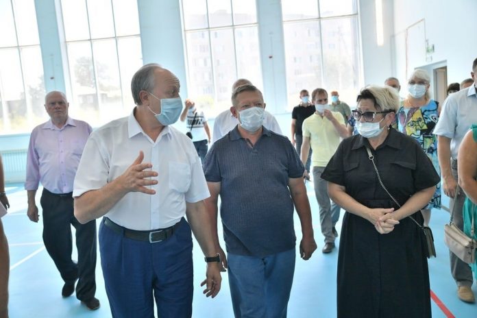 Губернатор Саратовской области Валерий Радаев и депутат Госдумы РФ Николай Панков осмотрели, как идёт завершение строительства ФОКа с бассейном в городе Шиханы.