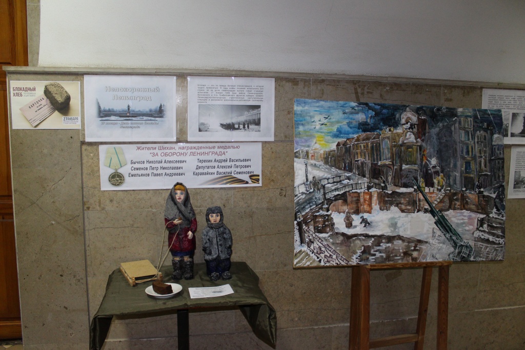 Также на выставке можно рассмотреть скульптуры «Дети блокадного Ленинграда» с художественной панорамой (работы выполнили Раскова О.М. и ее воспитанники). Эти экспонаты выставлялись в 2019 году в г. Екатеринбурге в Музее наивного искусства на межрегиональной выставке художников-любителей Уральского и Приволжского федеральных округов «Салют Победы», посвященной 75-летию Великой Победы. Наша экспозиция тогда стала обладательницей специального диплома.