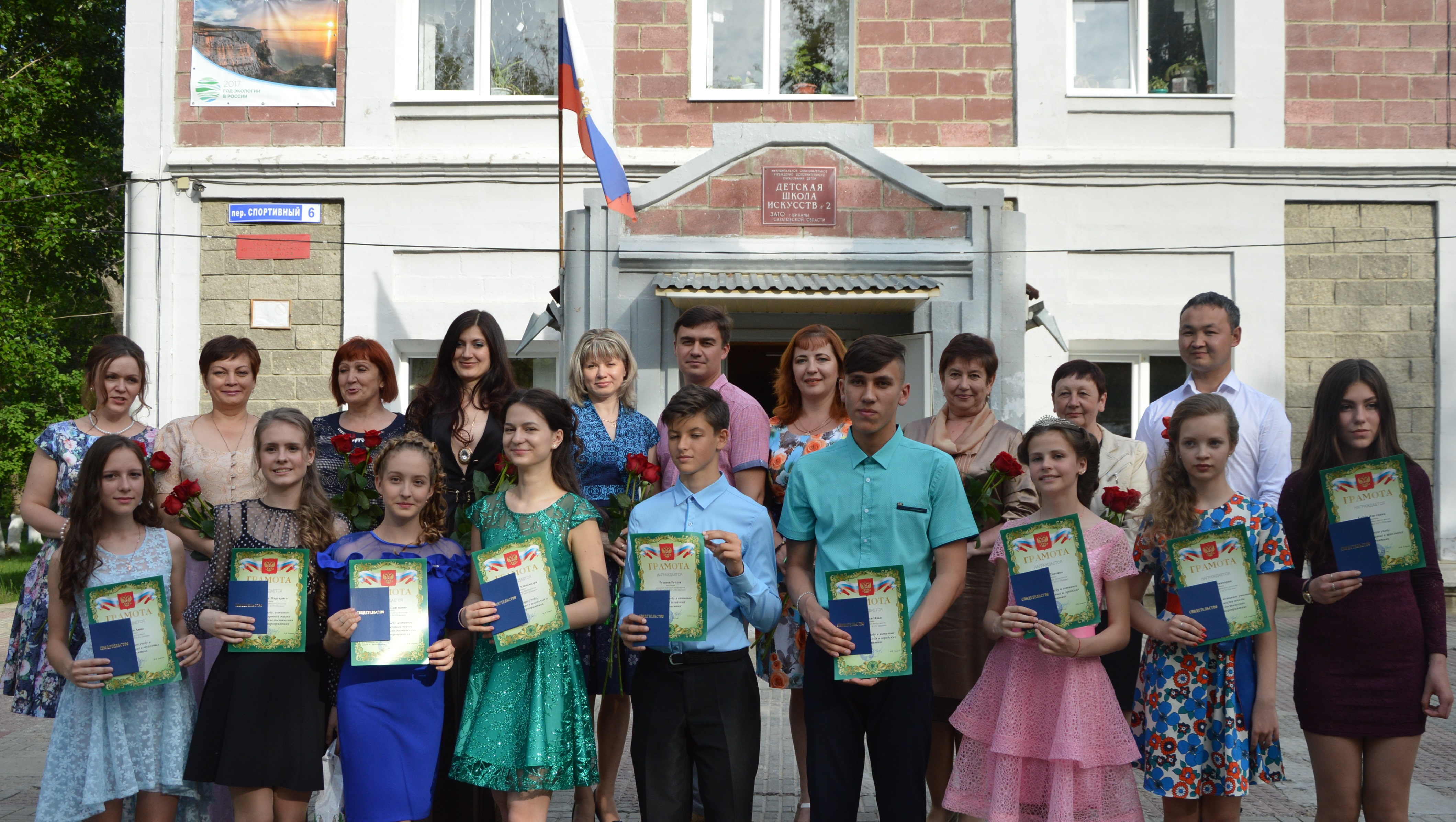 В этом году свидетельства об окончании Детской школы искусств получили 10 молодых, творческих, увлеченных искусством выпускников. Фортепианное отделение - Трушина Анна. Отделение народных инструментов - Габор Ангелика, Голубь Татьяна, Женалиев Илья, Махранова Александра, Рузанов Руслан, Фешин Владислав. Хореографическое отделение - Дышко Виктория, Илларионова Маргарита, Салтыкова Екатерина.